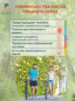 Регулярное употребление масла грецкого ореха дает организму незаменимые жирные кислоты и антиоксиданты, помогает поддерживать здоровье сердечно-сосудистой системы, замедляет процесс старения организма и защищает организм от влияния свободных радикалов.
