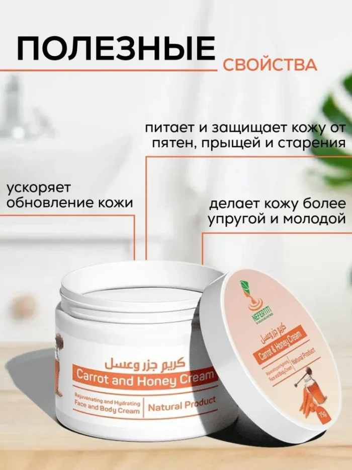 Суперпродукты – и морковь, и мед объединяют в себе удивительный набор незаменимых витаминов, минералов и питательных веществ, включая витамины A, C, E, K плюс аминокислоты, богатый антибиотиками ингибин, биотин, фолацин, бета-каротин, кальций, медь, железо, магний, марганец, фосфор, калий, натрий и цинк. Благодаря естественным антисептическим, антиоксидантным, антимикробным, антибиотическим и противовоспалительным свойствам, недуги кожи, включая прыщи, старение, пигментацию, сухость, будут устранены, а кожа станет молодой и сияющей здоровьем.