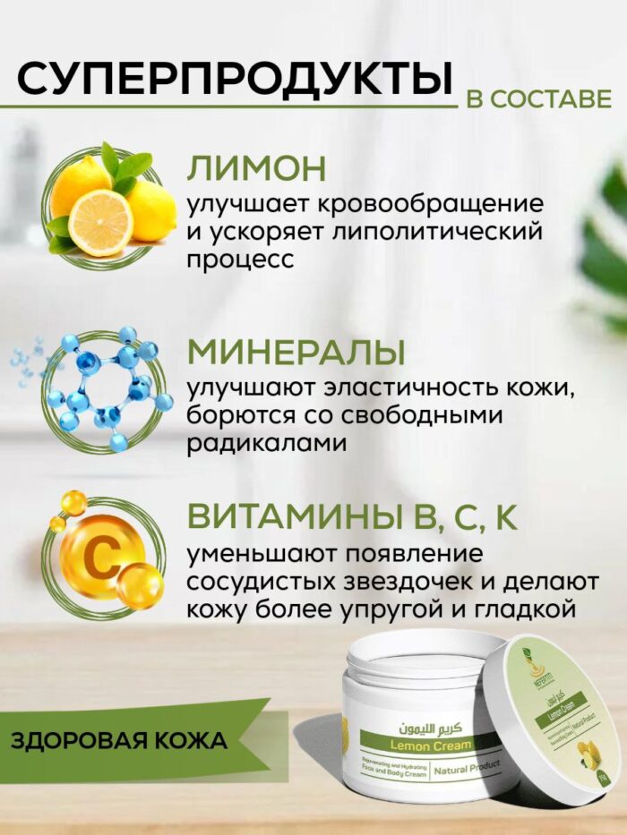 Лимон – это волшебная комбинация незаменимых витаминов и минералов, содержащая бета-каротин, витамины B, C, K, фолиевую кислоту, калий, кальций, натрий, фосфор, магний, цинк, железо, марганец, медь, никель и селен, а также цитронол, камфен, цитраль, альдегиды, терпинеол, лимонен и линалилацетат, необходимые для сияющей здоровой кожи. Вместе они обеспечивают противовоспалительное, противомикробное, антибактериальное, антисептическое, противоревматическое, противовирусное и антисклеротическое действие.