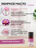 Теперь, узнав больше о “священном” лотосе, вы не удивитесь, что эфирное масло лотоса очень хорошо известно и широко используется в ароматерапии. Оно известно как эффективное средство для лечения дыхательных путей, облегчения таких состояний, как простуда, грипп и лихорадка.
