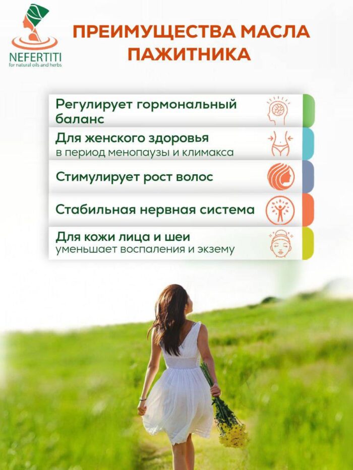 Масло Хельбы просто незаменимо в период предменопаузы и климакса. Оно превосходно поддерживает здоровье женщин, облегчает переходный период и устраняет дискомфорт во время менопаузы. Хорошо сбалансированные женские гормоны поддерживают стабильность нервной системы и также улучшают привлекательный и здоровый внешний вид женской кожи. Отсутствие дискомфорта избавляет женщину от стресса и улучшает качество ее жизни.