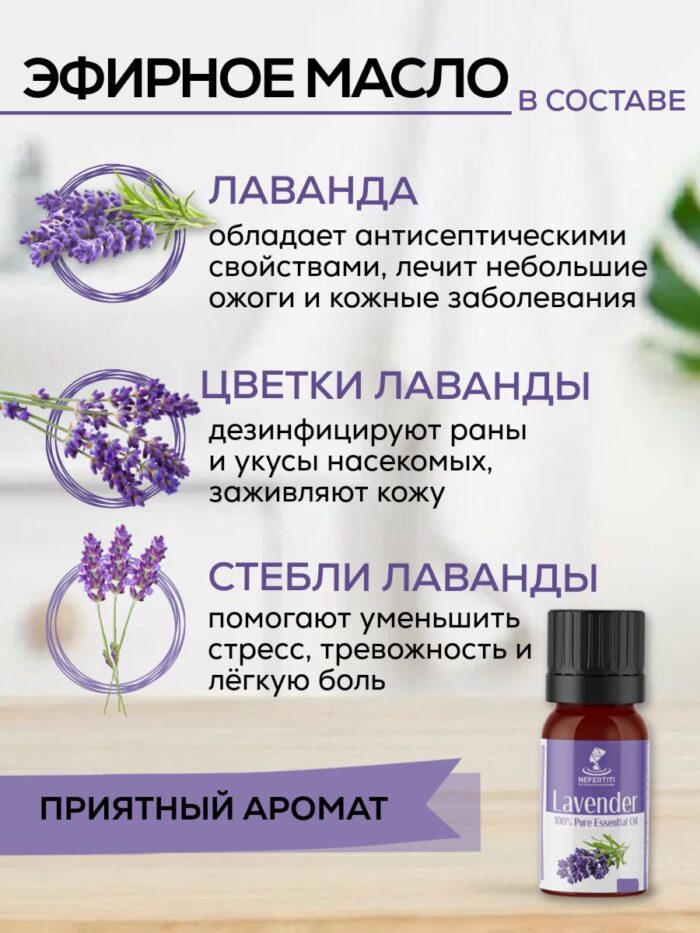 Масло лаванды – одно из наиболее широко используемых эфирных масел в ароматерапии. Считается, что аромат этого масла способствует спокойствию и благополучию, а также помогает уменьшить стресс, тревожность и, возможно, даже легкую боль. Одно исследование показало, что местное нанесение масла лаванды на кожу может уменьшить тяжесть менструальных спазмов. Но это еще не все!
