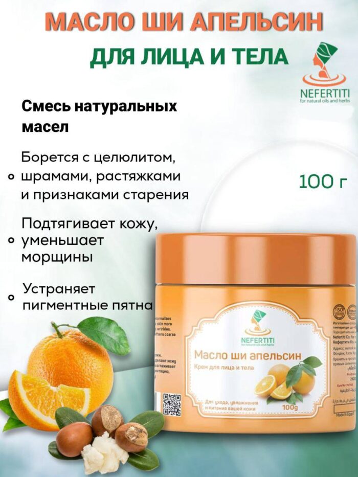 Покупая натуральные продукты, всегда обращайте внимание на 100% качество. Масло ши с маслом апельсина Нефертити производится под постоянным контролем качества на собственном заводе в Файюме из 100% натуральных продуктов, без использования искусственных добавок. Мы контролируем выращивание использованных натуральных продуктов, собственное производство и весь процесс, вплоть до продажи в наших магазинах или интернет-магазинах. Доверьтесь апельсиновому маслу ши от Nefertiti Oils & Herbs: наше высшее качество!