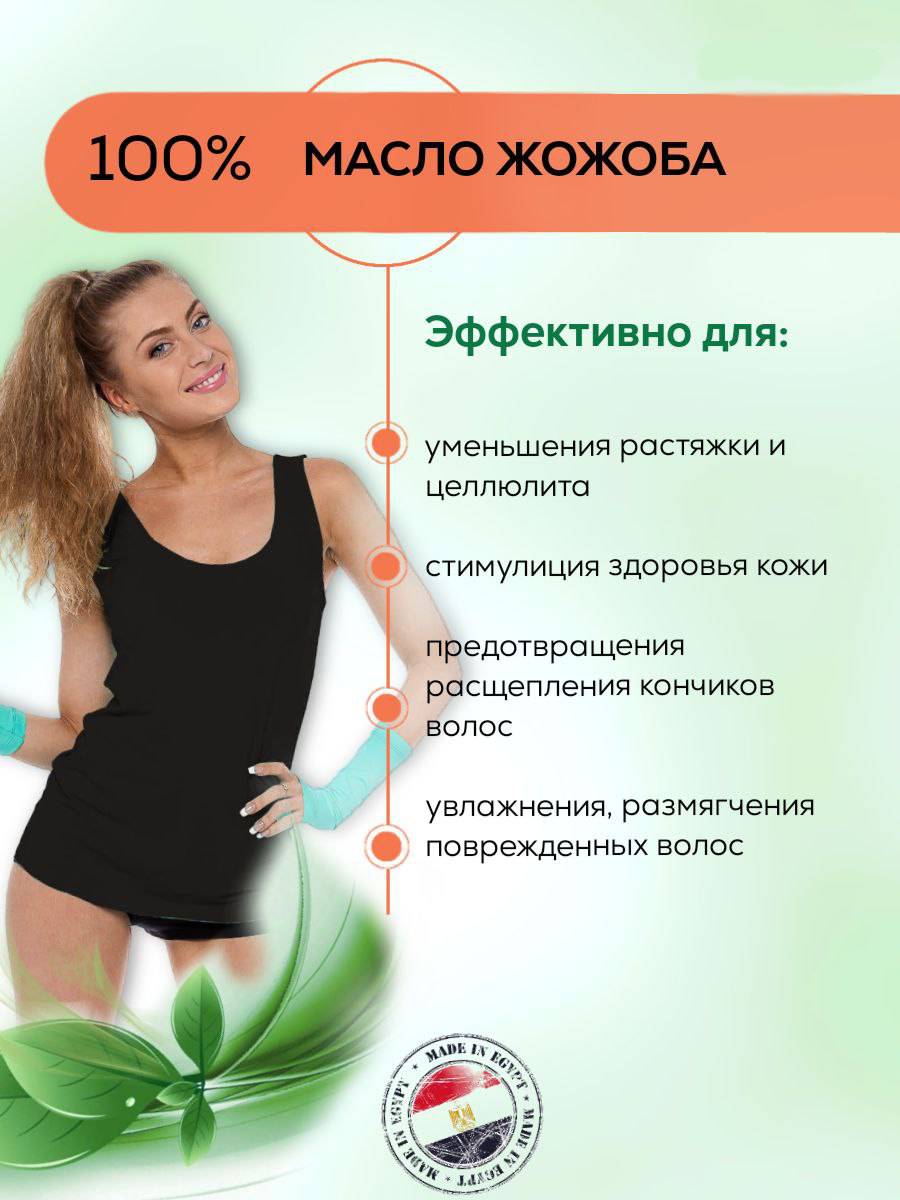 Масло жожоба холодного отжима (Simmondsia chinensis) содержит много биологических и минеральных веществ, которые необходимы для прекрасной ухоженной кожи и красивых волос. Натуральное масло жожоба устраняет вредное воздействие окружающей среды на кожу человека и замедляет процесс старения кожи. Оно глубоко проникает в кожу, прекрасно впитывается, обеспечивает увлажнение, питание и защиту кожи лица и тела. Содержит витамины А и Е в высокой концентрации, поэтому масло жожоба прекрасный антиоксидант, который стимулирует процесс регенерации клеток и продлевает тем самым молодость кожи.