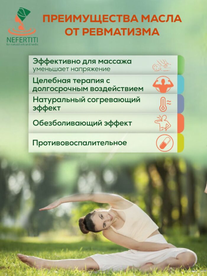 Натуральная смесь масел от боли помогает при различных воспалительных заболеваниях суставов (ревматоидный артрит, ревматизм, хронический подагрический артрит), дегенеративных заболеваниях (деформирующий остеоартроз, остеохондроз, артриты), люмбаго, ишиасе, невралгии, при заболеваниях внесуставных тканей, при острых приступах подагры, грыжах и протрузиях, при посттравматических болевых синдромах, сопровождающихся воспалениями, при травмах суставов, спортивных травмах (растяжениях, разрывах связок), при мышечных болях, ушибах, гематомах, вывихах.