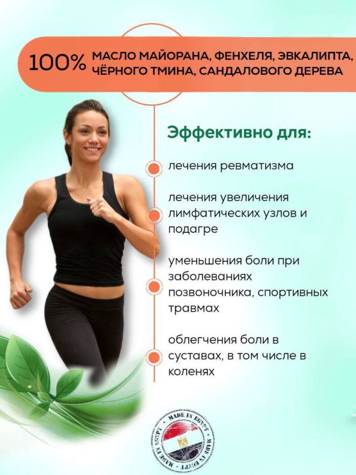 Ноги и ступни чаще всего подвергаются усталости. Основными причинами этого состояния являются высокие каблуки, неудобная обувь, утомительная ходьба. Смесь натуральных масел от суставных болей заботится о ваших ногах в течение всего дня, легко снимает боль, улучшает кровоснабжение и придает легкость вашим ногам.